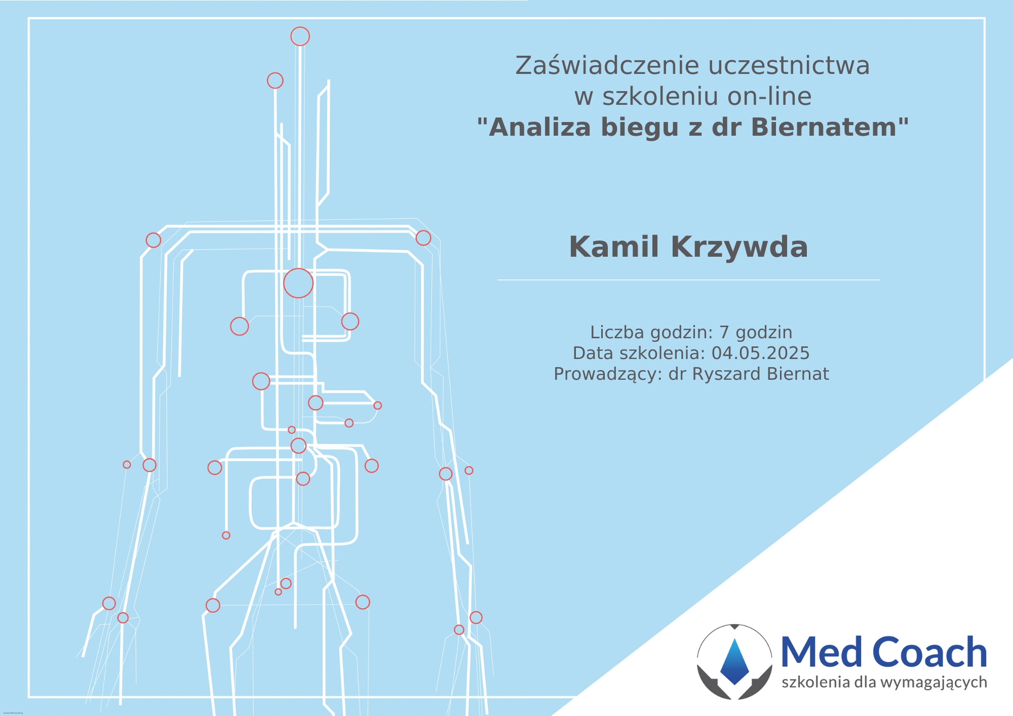 Jestem certyfikowanym trenerem lekkiej atletyki PZLA, trenerem personalnym z 10-letnim doświadczeniem i masażystą. Ale przede wszystkim – człowiekiem, który rozumie, jak wygląda start od zera. Wiem, jak bardzo potrzebne jest wtedy nie tylko wsparcie merytoryczne, ale też zrozumienie i opieka. Nie zostawiam podopiecznych samych sobie – jestem obok, wspieram, tłumaczę, reaguję na zmiany i dopasowuję plan na bieżąco.